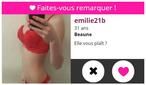 Si vous avez l’habitude de trouver vos plans culs en ligne, alors vous connaissez sans doute Tinder ! Et bien Erotilink propose une fonctionnalité similaire où l’on vous propose des profils spécialement sélectionnés en fonction de vos goûts. Si vous aimez, vous cliquez sur le cœur, sinon sur la croix ! C’est simple, rapide, efficace… Bref, on adore !
