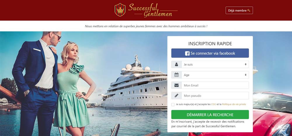 Vu la page d’accueil de Successful Gentlemen, on s’est senti un peu intimidé ! Et le slogan ne nous a pas forcément rassurés : « Nous mettons en relation de superbes femmes avec des hommes ambitieux à succès ! » Ambitieux, nous le sommes, quant au succès … ça reste à voir ! Mais qu’à cela ne tienne, nous avons tout de même tenté notre chance. Nous avons bien fait de ne pas nous laisser impressionner, car en réalité tout le monde peut s’inscrire, sans aucune discrimination. D’ailleurs, l’inscription est assez rapide, même s’il faudra vérifier votre identité avec un mail valable.